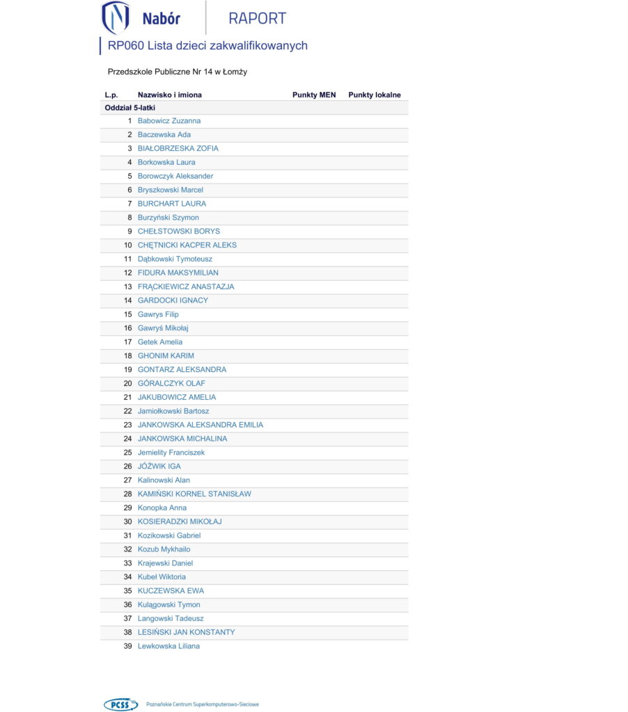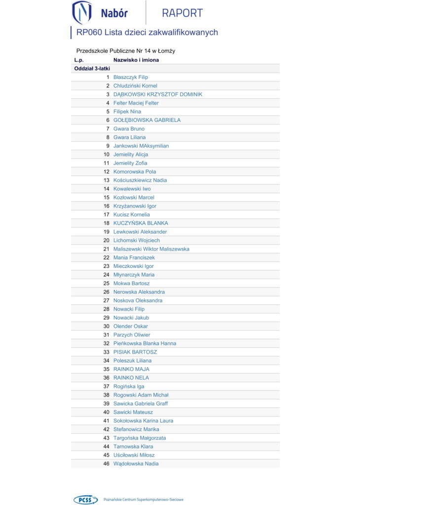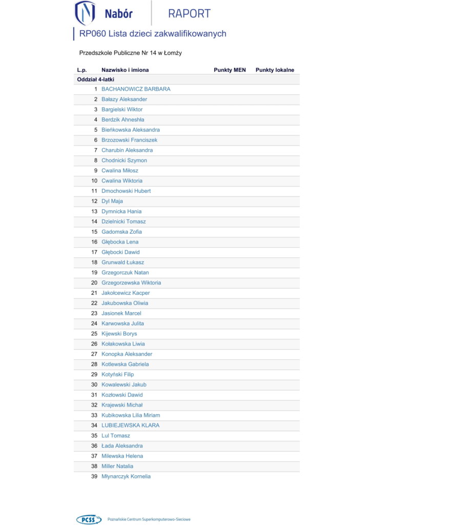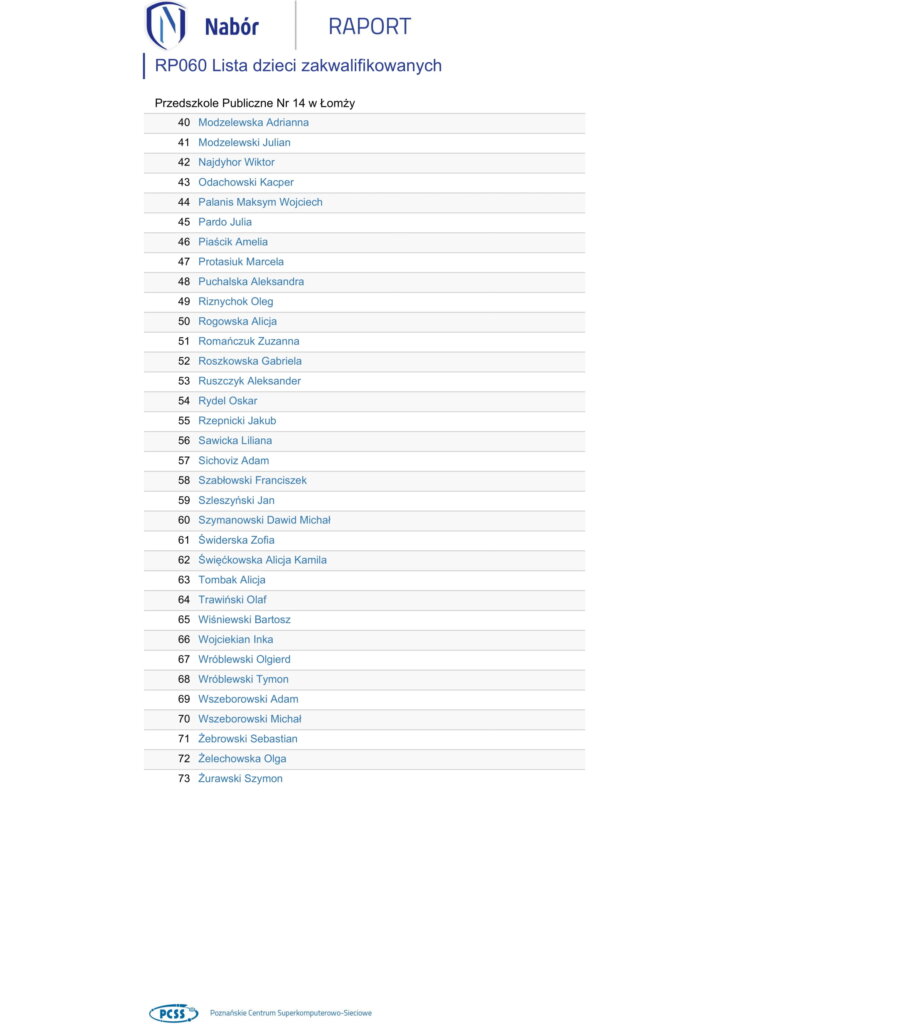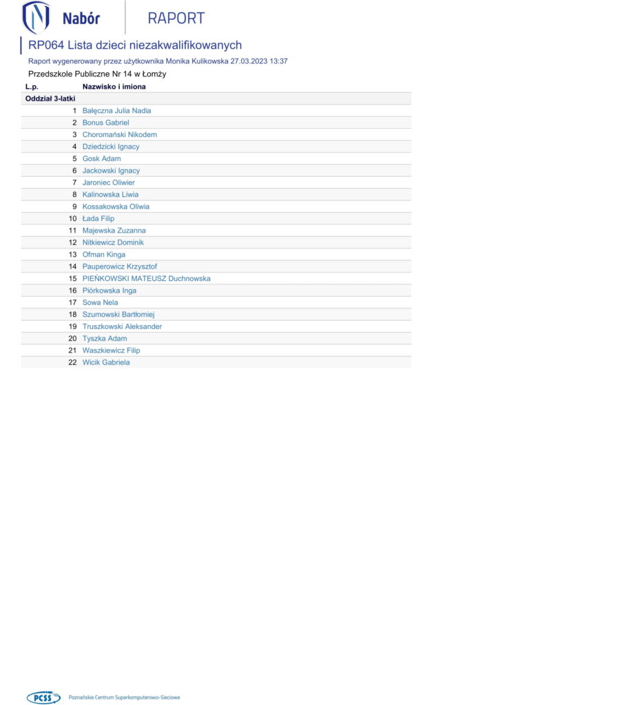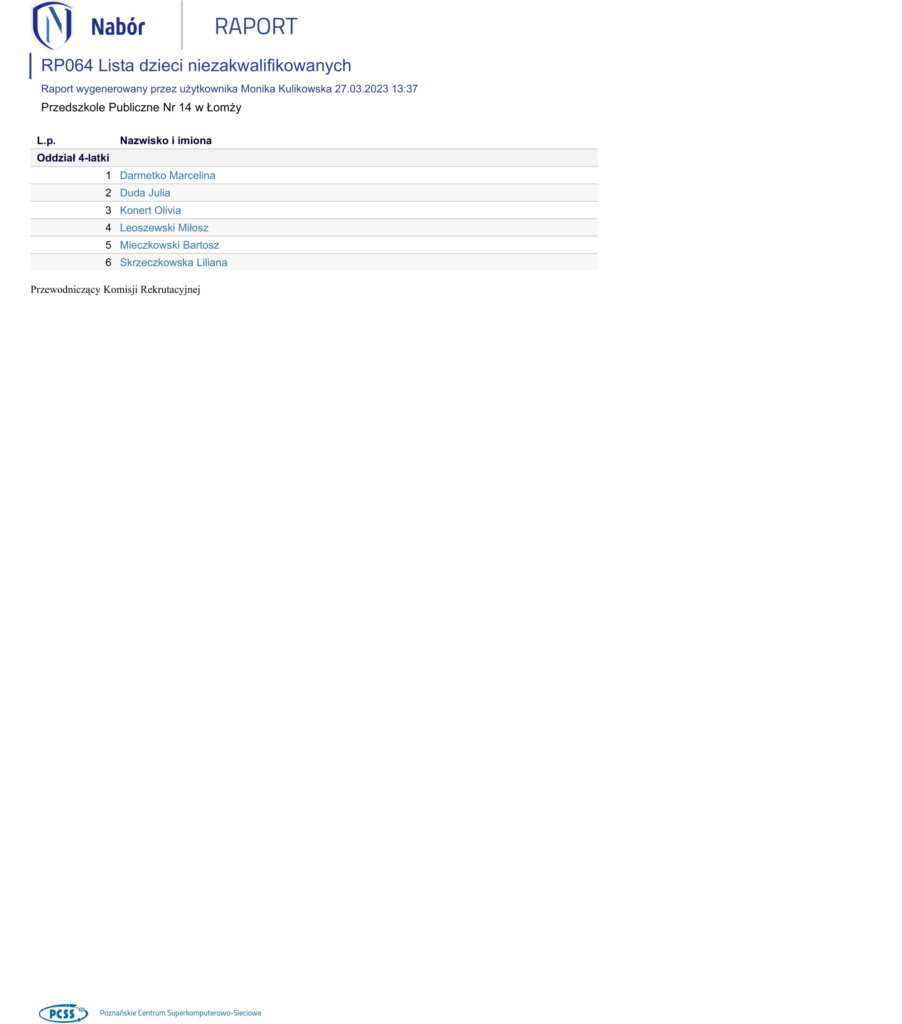 Wyniki rekrutacji do przedszkola na rok szkolny 2023/2024