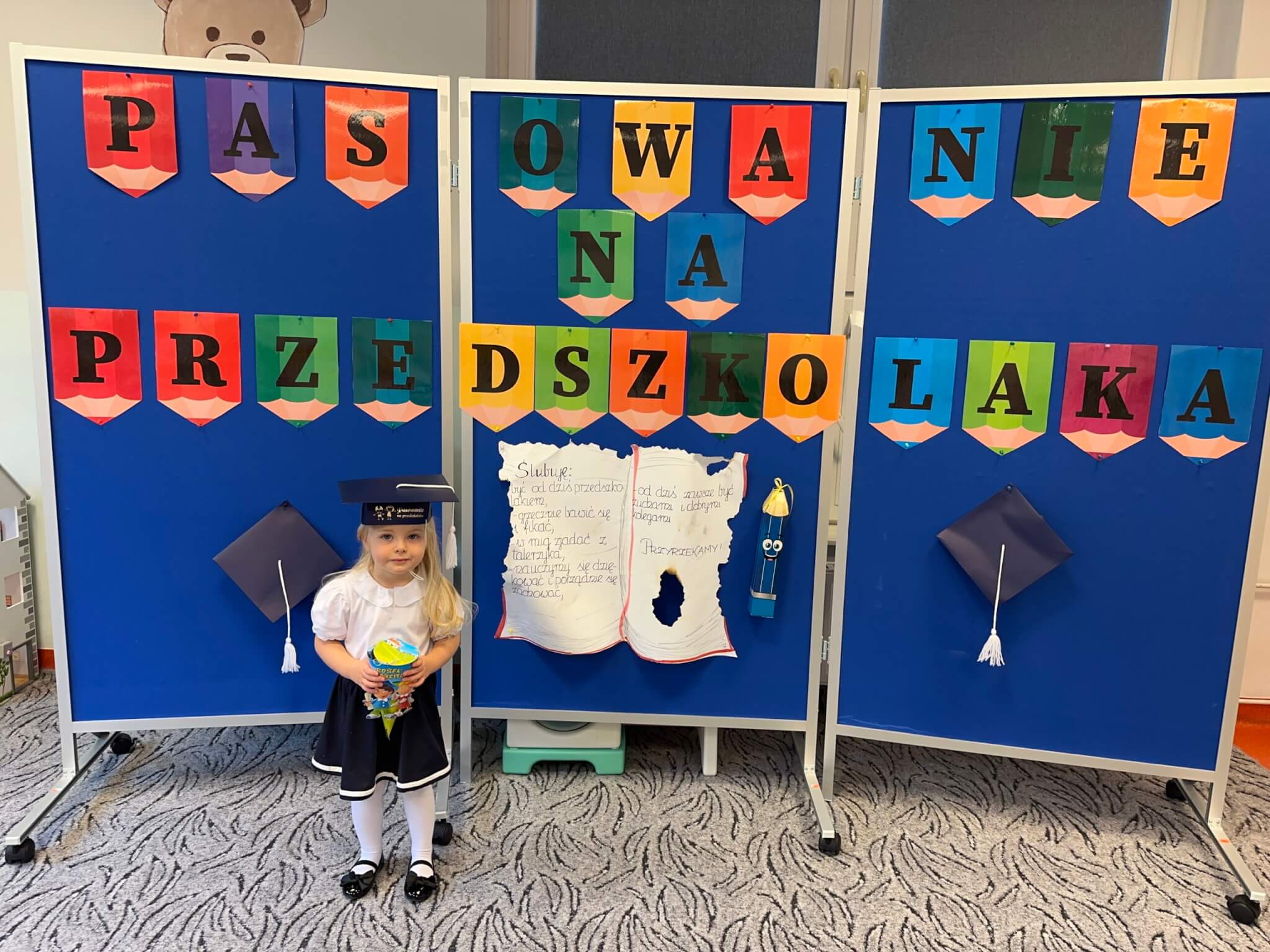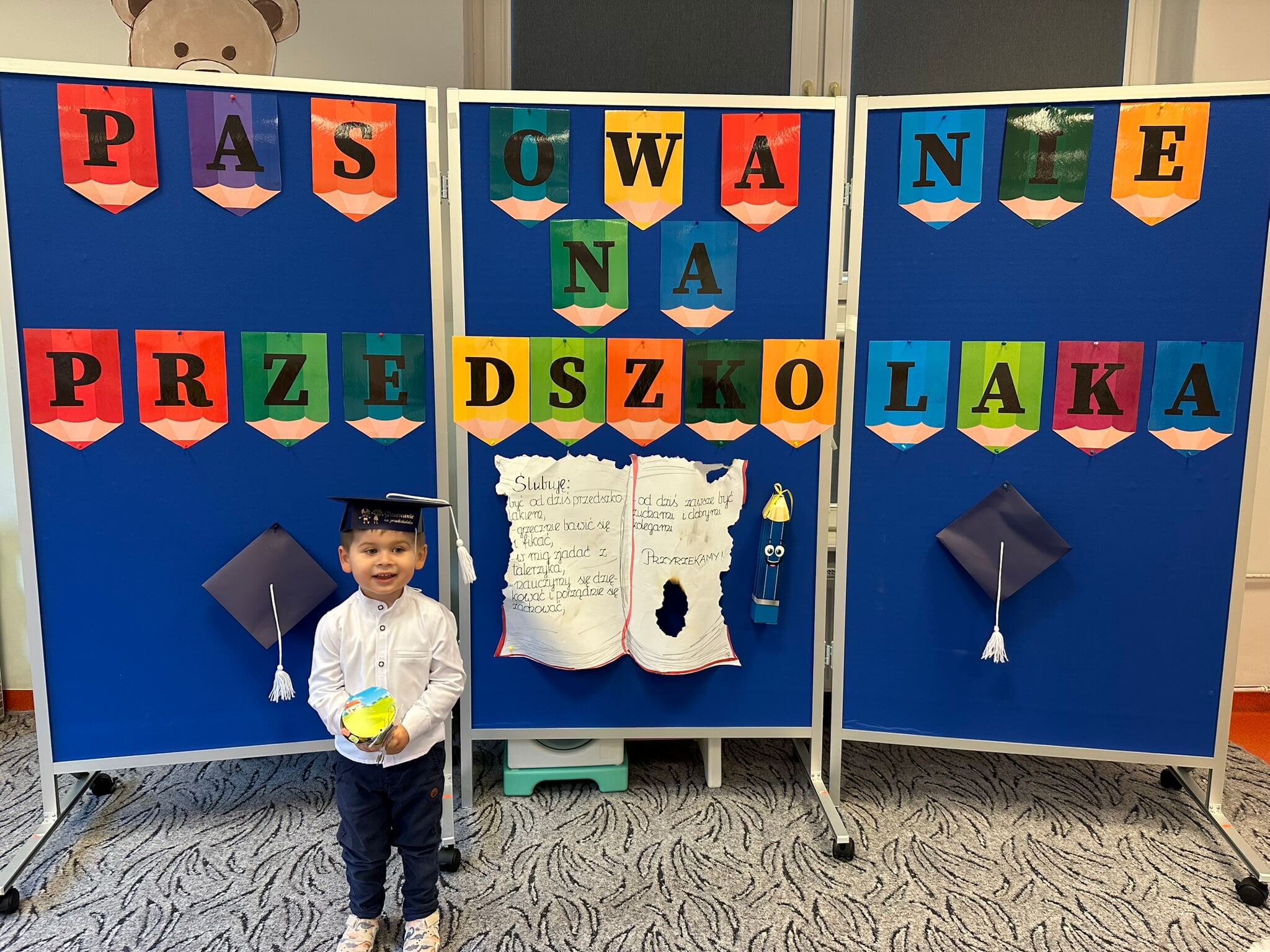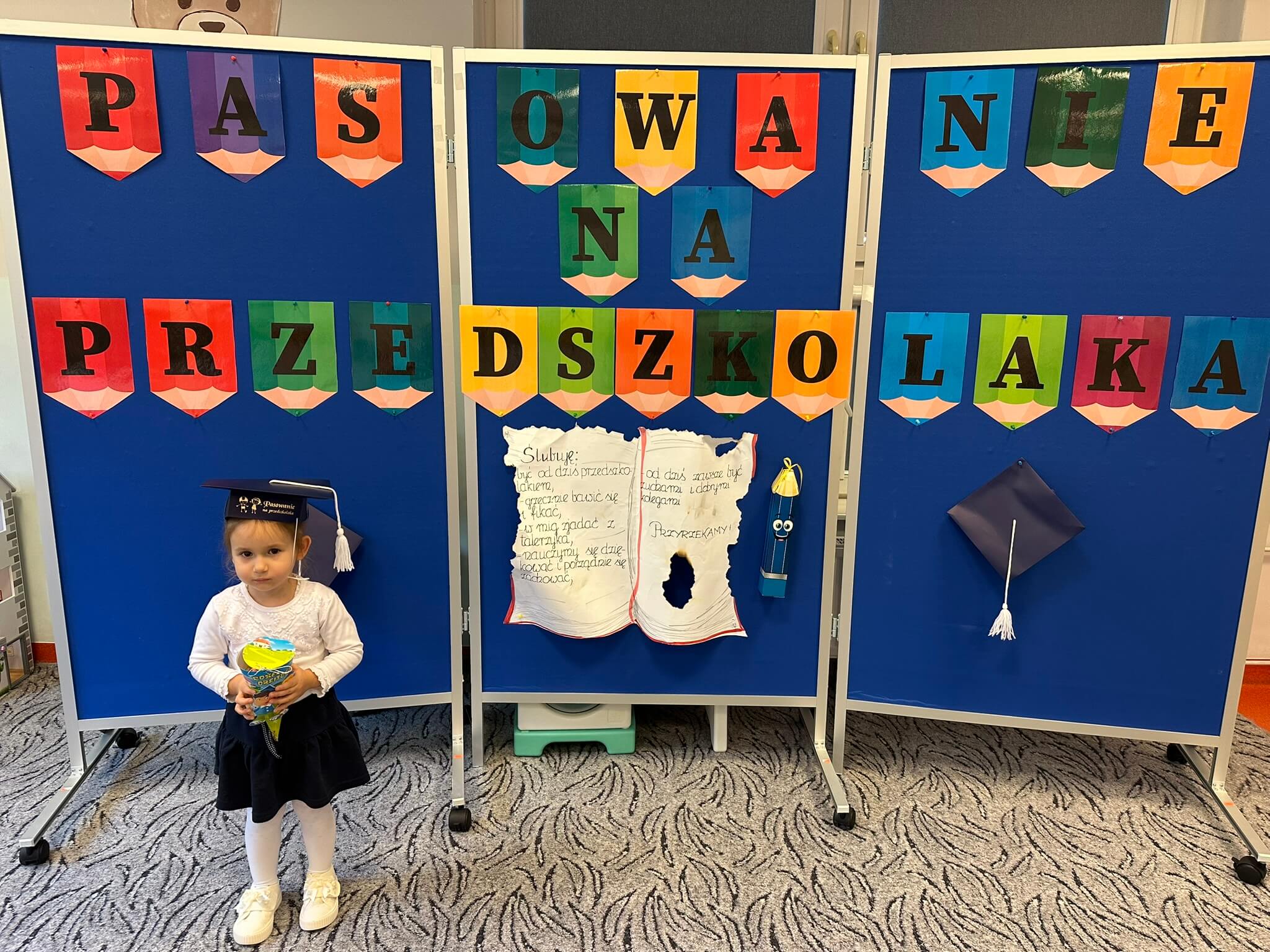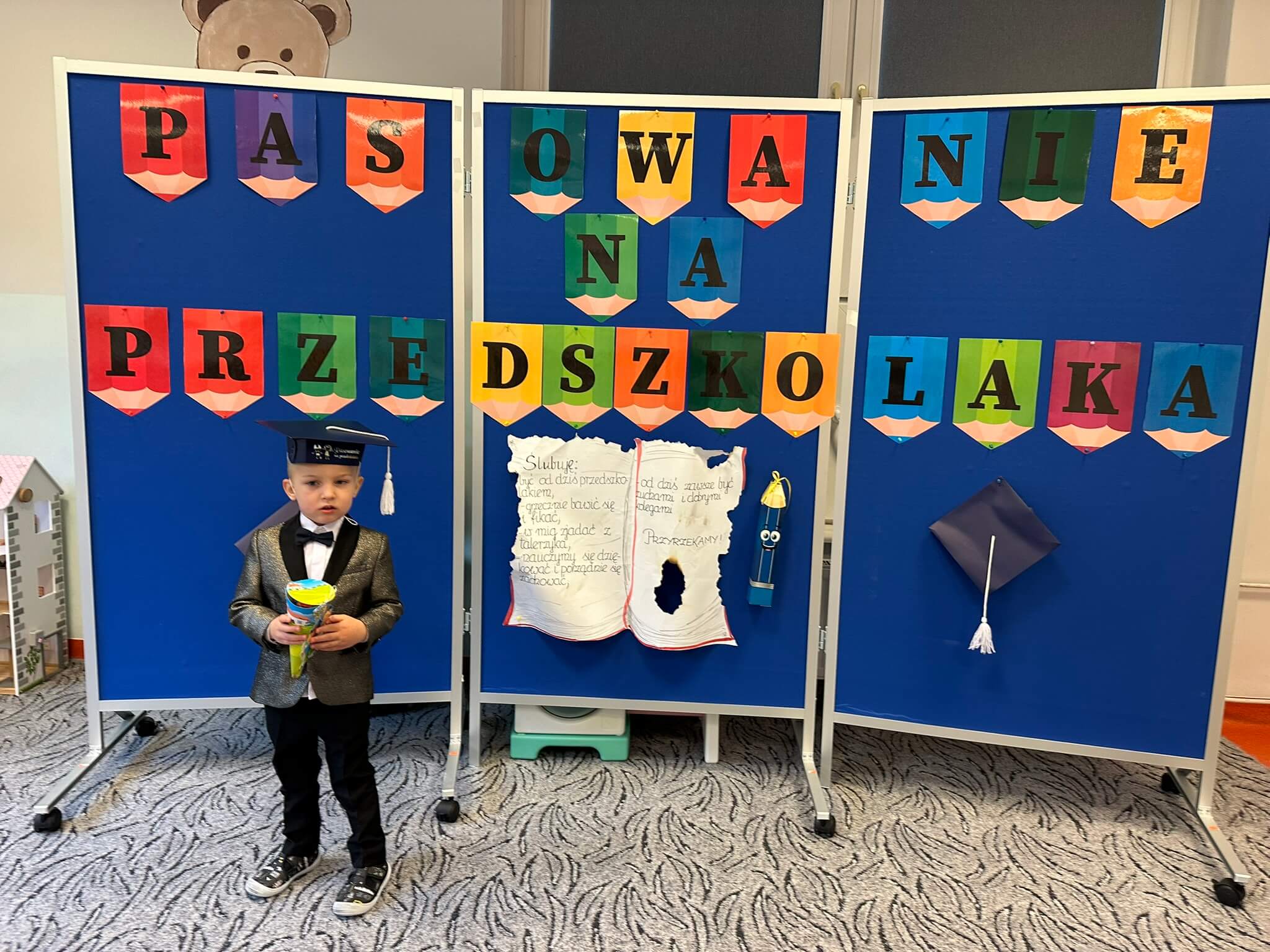 28 października w naszym przedszkolu odbyło się uroczyste Pasowanie na Przedszkolaka. To ważne wydarzenie, podczas którego najmłodsze dzieci zostały oficjalnie przyjęte do społeczności przedszkolnej.