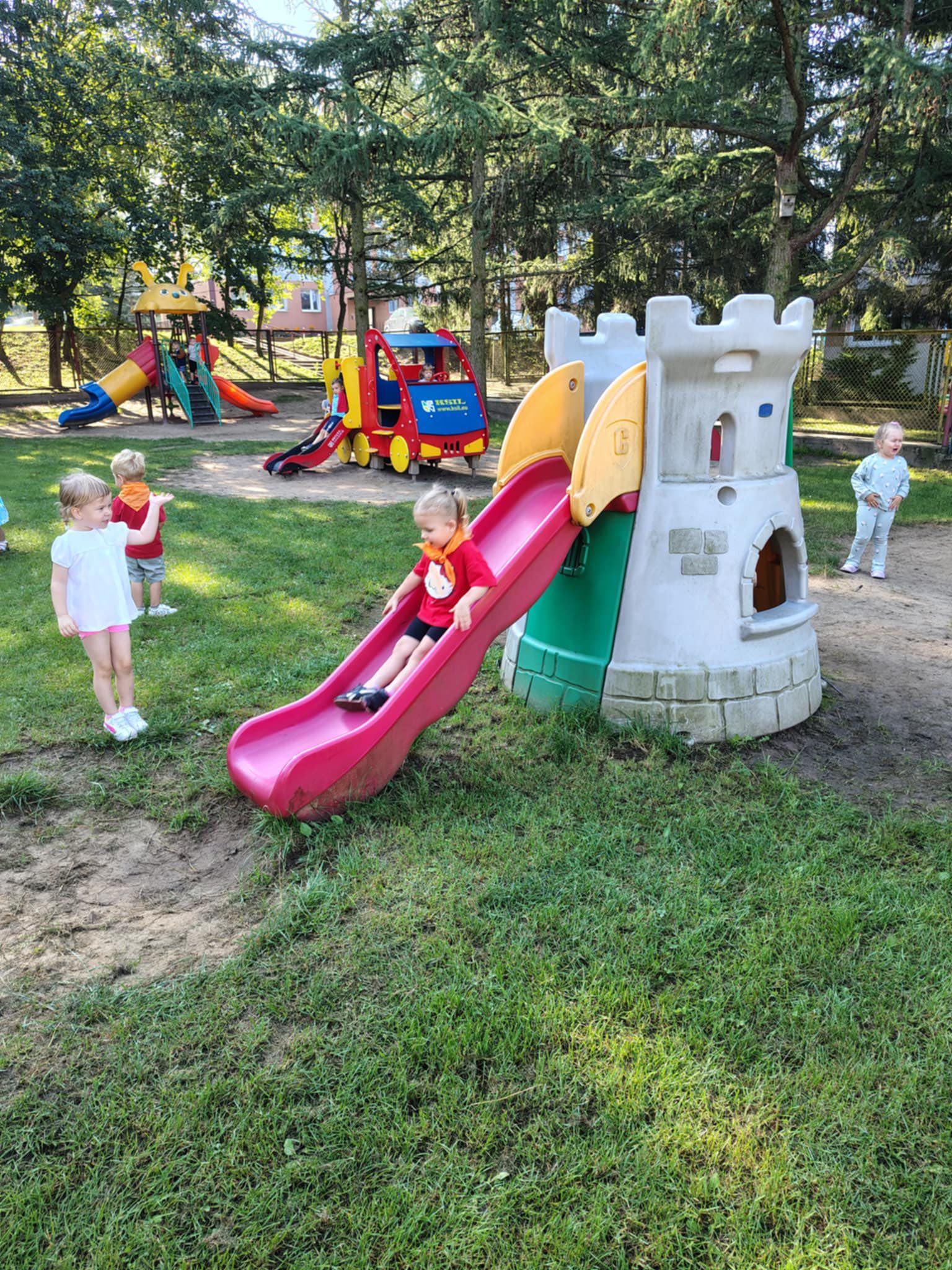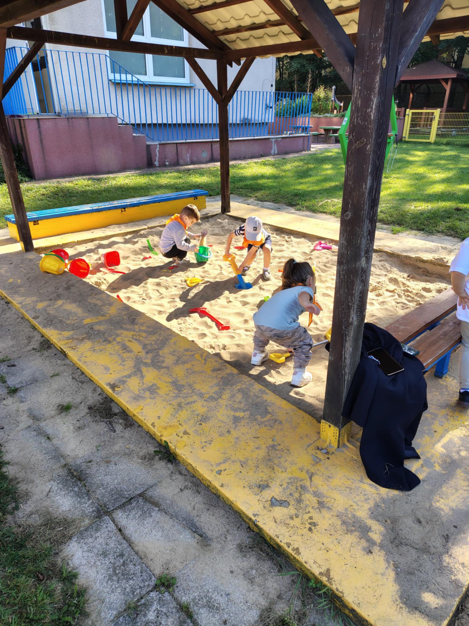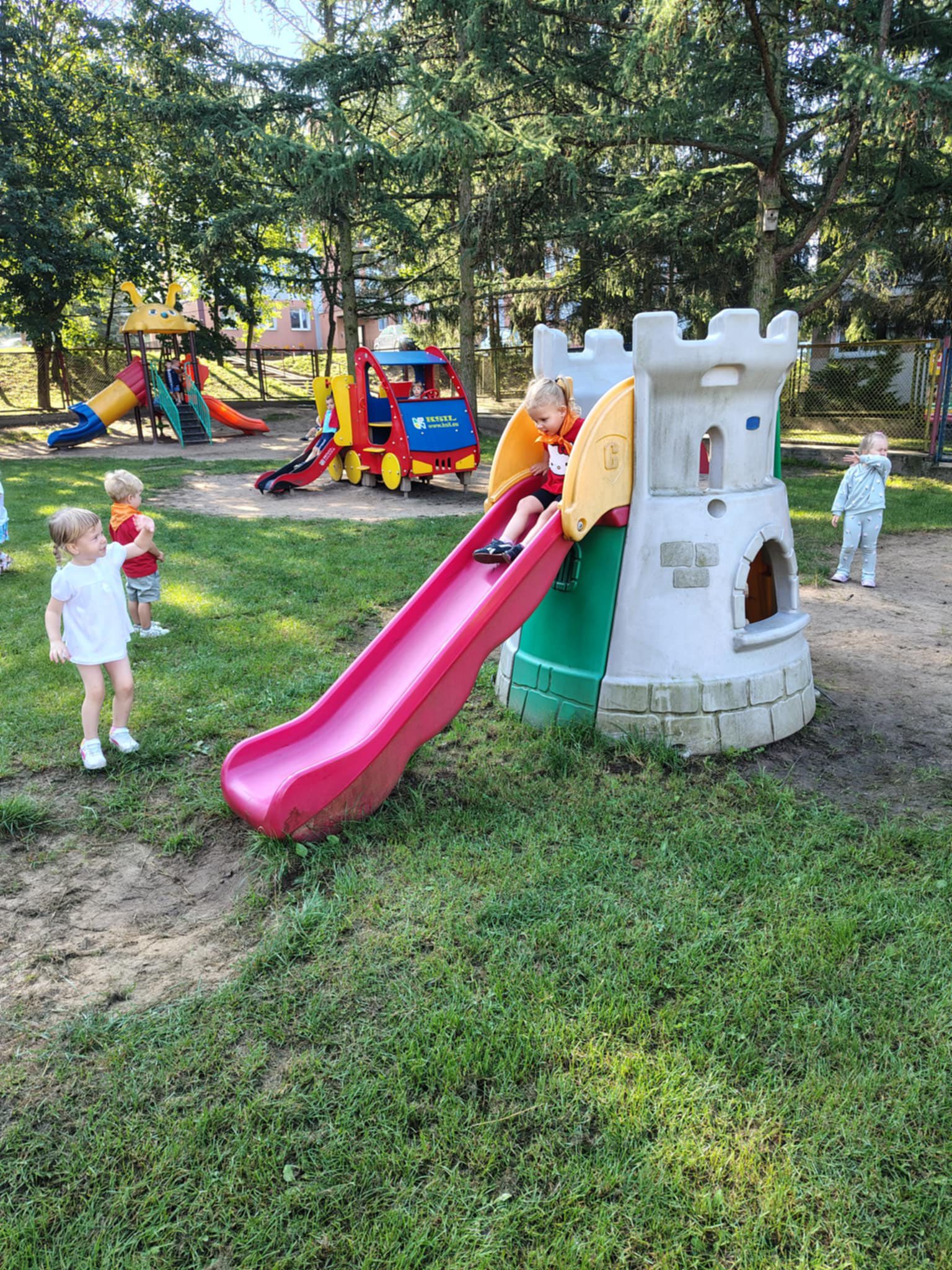 Korzystamy z pięknej, słonecznej pogody i ostatnich ciepłych dni lata! Nasze przedszkolaki spędzają czas w przedszkolnym ogrodzie, pełne radości, uśmiechu i energii. 🎉