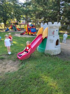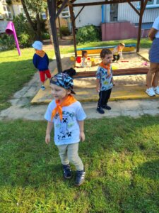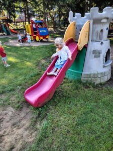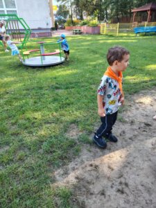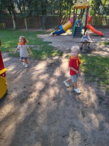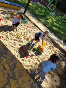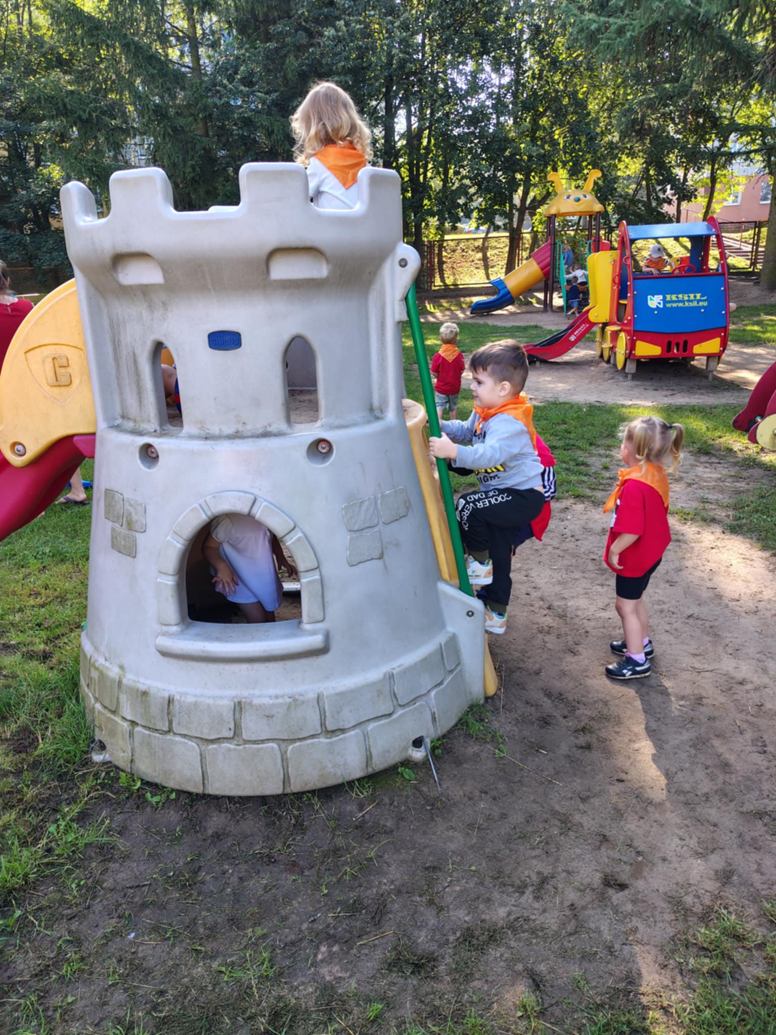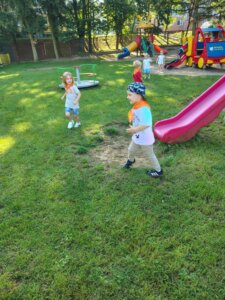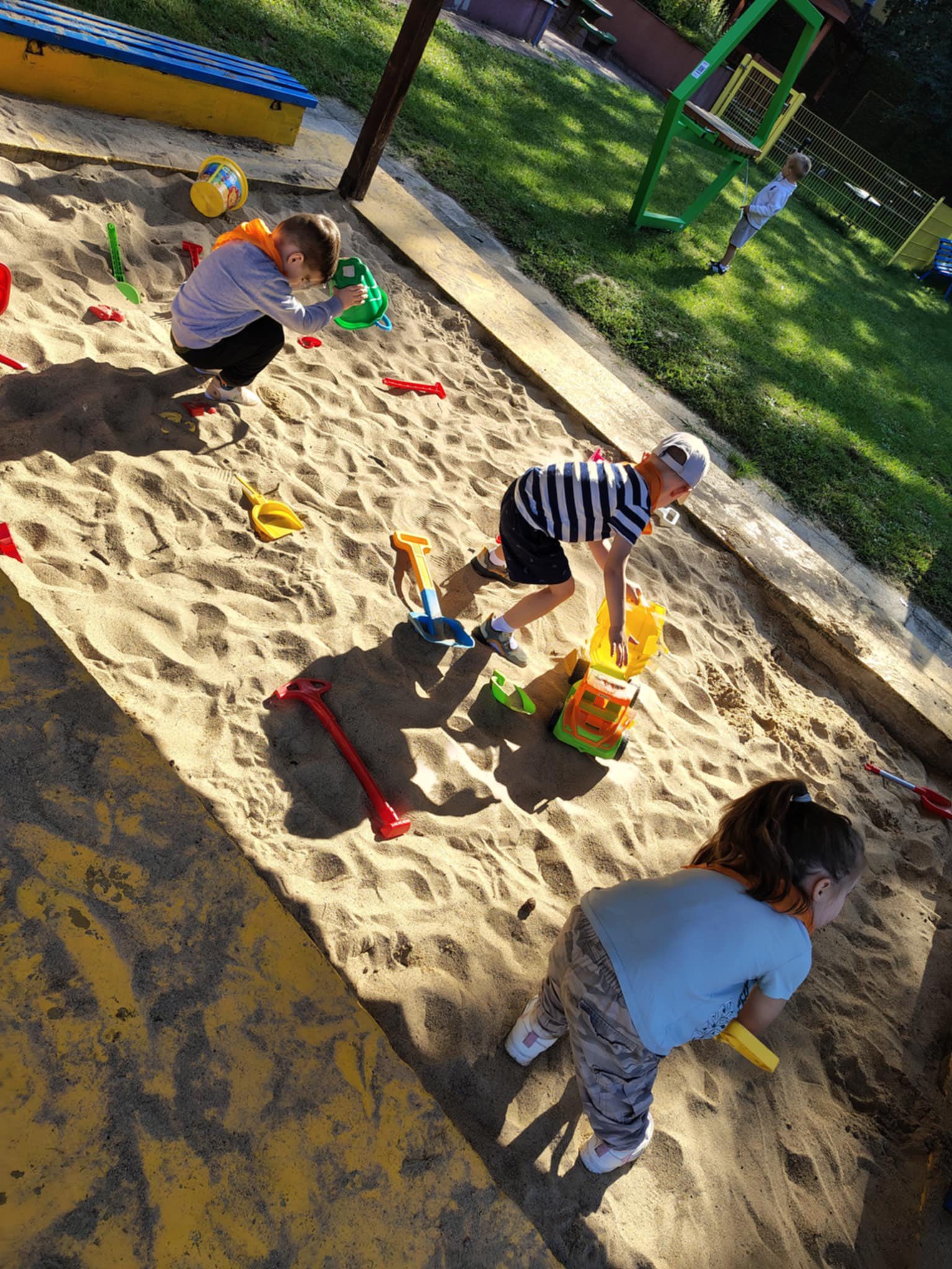 Korzystamy z pięknej, słonecznej pogody i ostatnich ciepłych dni lata! Nasze przedszkolaki spędzają czas w przedszkolnym ogrodzie, pełne radości, uśmiechu i energii. 🎉