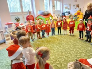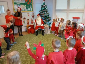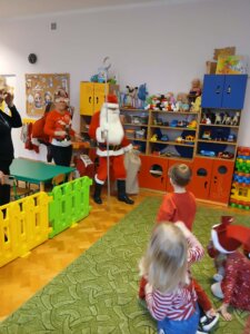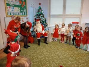 W dniu dzisiejszym do drzwi naszego Przedszkola zapukał Święty Mikołaj. Dzieci serdecznie go przywitały reniferową piosenką i tańcem. Uradowany Mikołaj obdarował dzieci mnóstwem wspaniałych prezentów. To był wyjątkowy dzień! Zapraszamy ponownie Mikołaja za rok!! Ho! Ho! Ho!