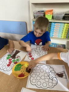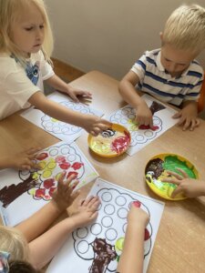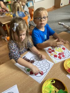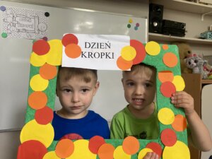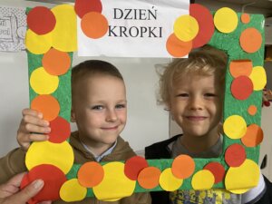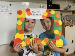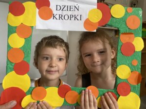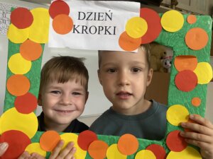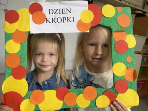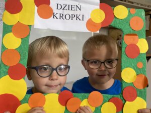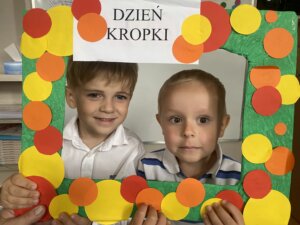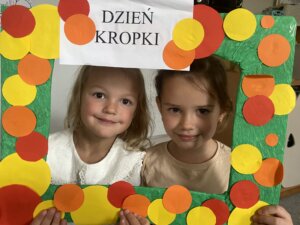15 września na całym świecie obchodzimy DZIEŃ KROPKI. Kropka jest tylko inspiracją do działań podejmowanych przez dzieci. W naszym przedszkolu kropka to dobra zabawa, kreatywność, odwaga.  Usłyszały opowiadanie o dziewczynce Vashti, która dzięki małej kropce odkryła niesamowitą pasję. Dzieci próbowały odkryć swoje pasje podczas animacji tanecznych, plastycznych czy zabaw ruchowych.