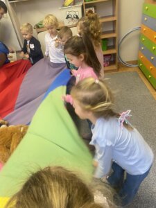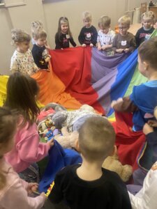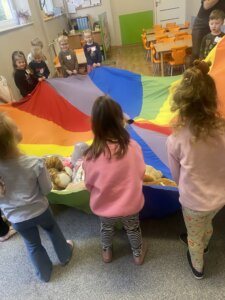 Dzień Pluszowego Misia to wyjątkowe święto, obchodzone 25 listopada. Ma ono na celu uczczenie jednej z najbardziej kultowych i ukochanych zabawek dzieciństwa – pluszowego misia. Dzieci spędziły ten dzień w towarzystwie ulubionych pluszaków przyniesionych z domu. Przedstawiły je swoim kolegom, bawiły się z nimi i tańczyły.