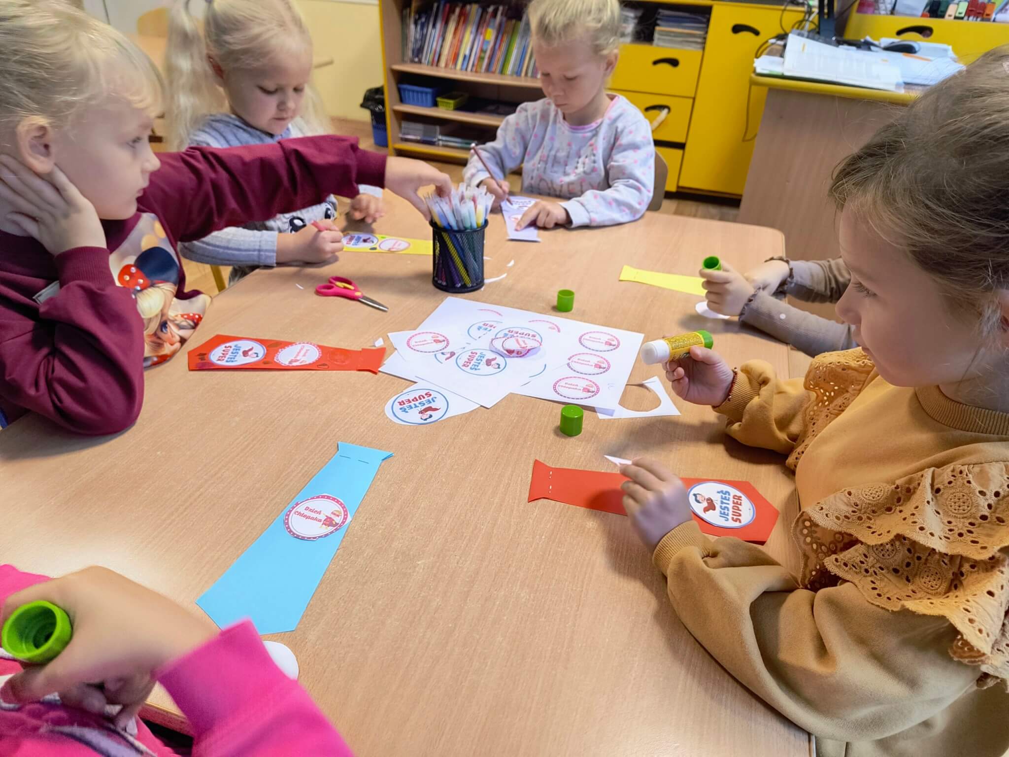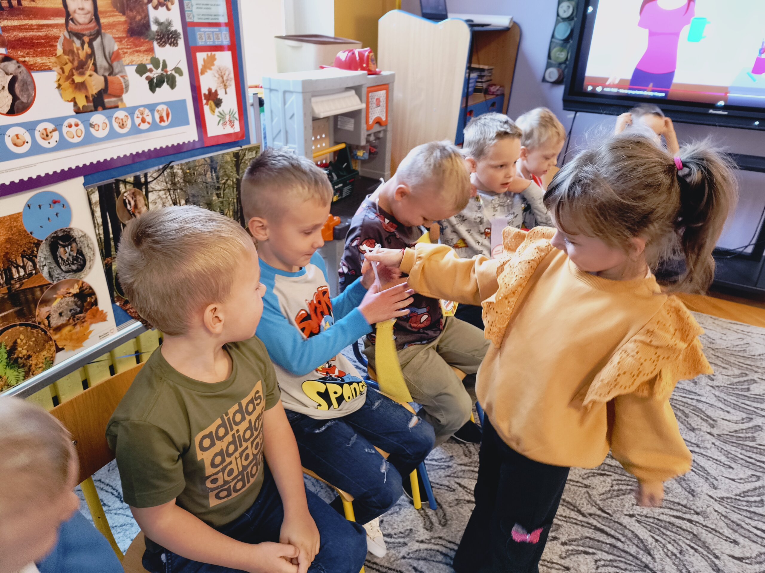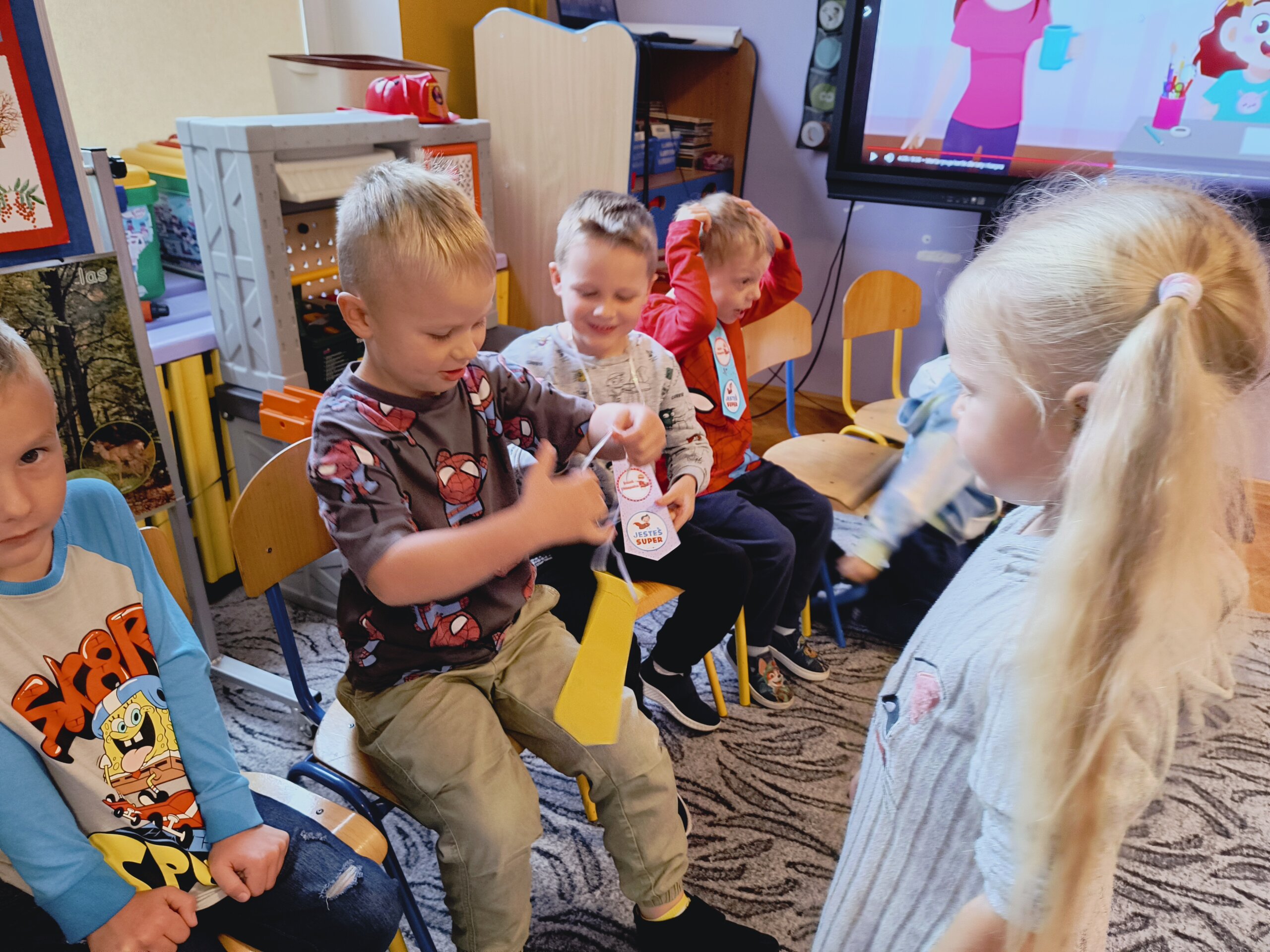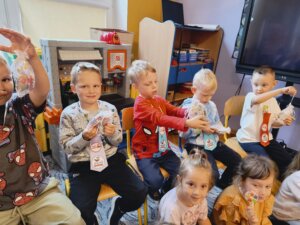 Dziś swoje święto mieli chłopcy. Dziewczynki przygotowały rano dla chłopców specjalne krawaty na tę okazję. Najpierw uroczyście odśpiewały 100lat, a następnie wręczyły kolorowe krawaty Super Chłopaka a także upominki przygotowane przez rodziców. Potem były zabawy przy muzyce, tańce w kole i parach oraz zabawy sportowe dla wszystkich.