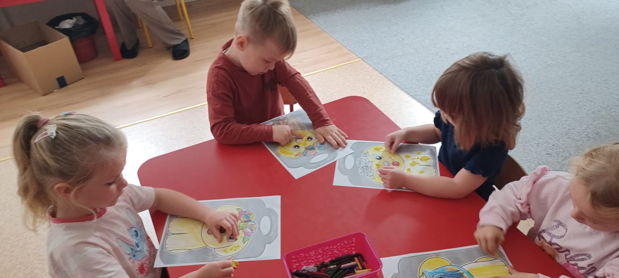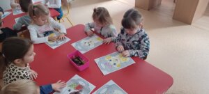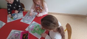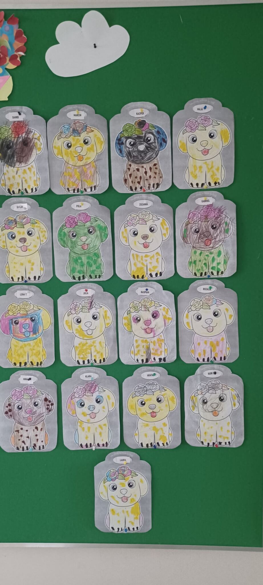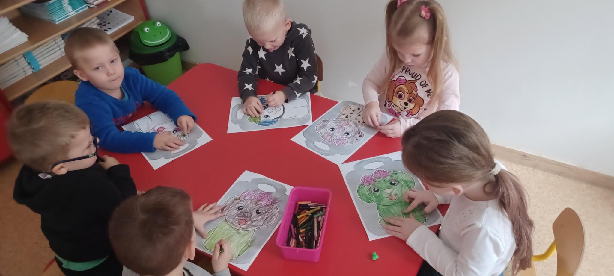 Podczas zajęć dzieci kolorowały sylwetę psa i wyklejały ją plasteliną.
