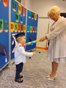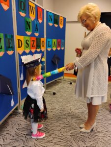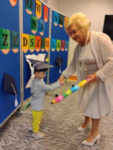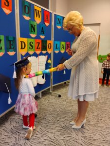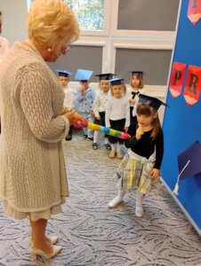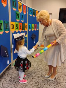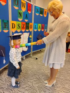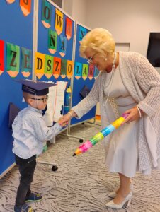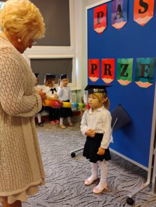 W dniu 28.10 odbyło się pasowanie na przedszkolaka. Dzieci zaśpiewały piosenkę a następnie zostały pasowanie przez panią Dyrektor.