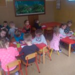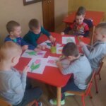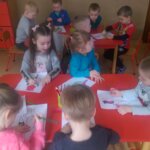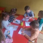 Podczas zajęć dzieci kolorowały kolorowymi mazakami sylwetę tulipan