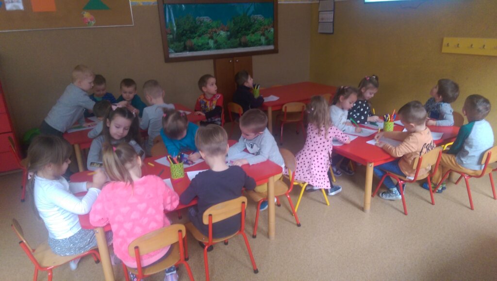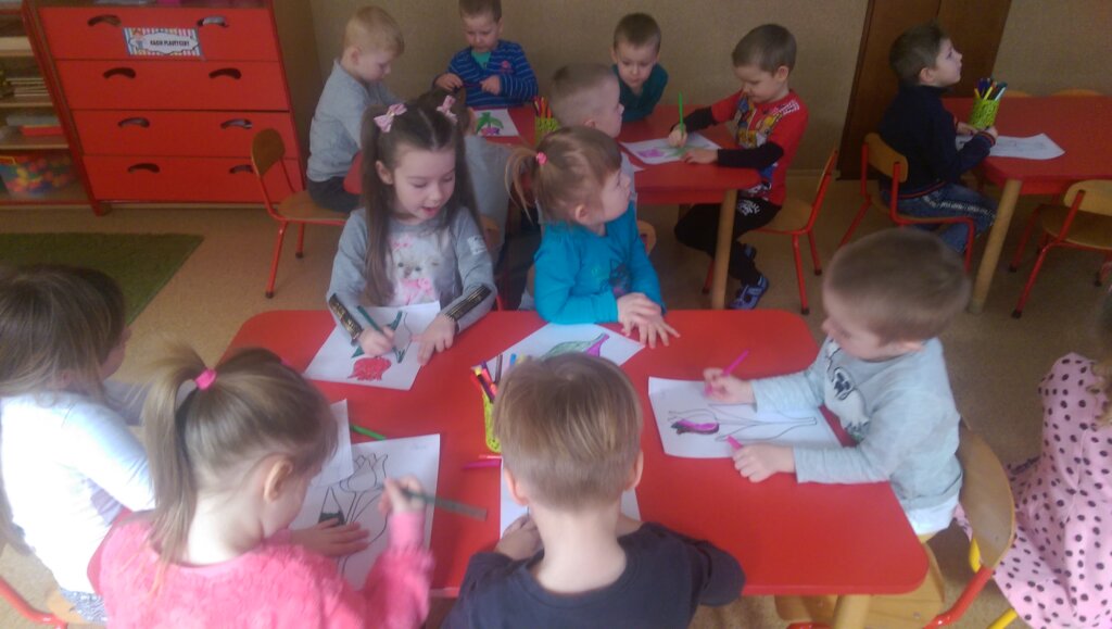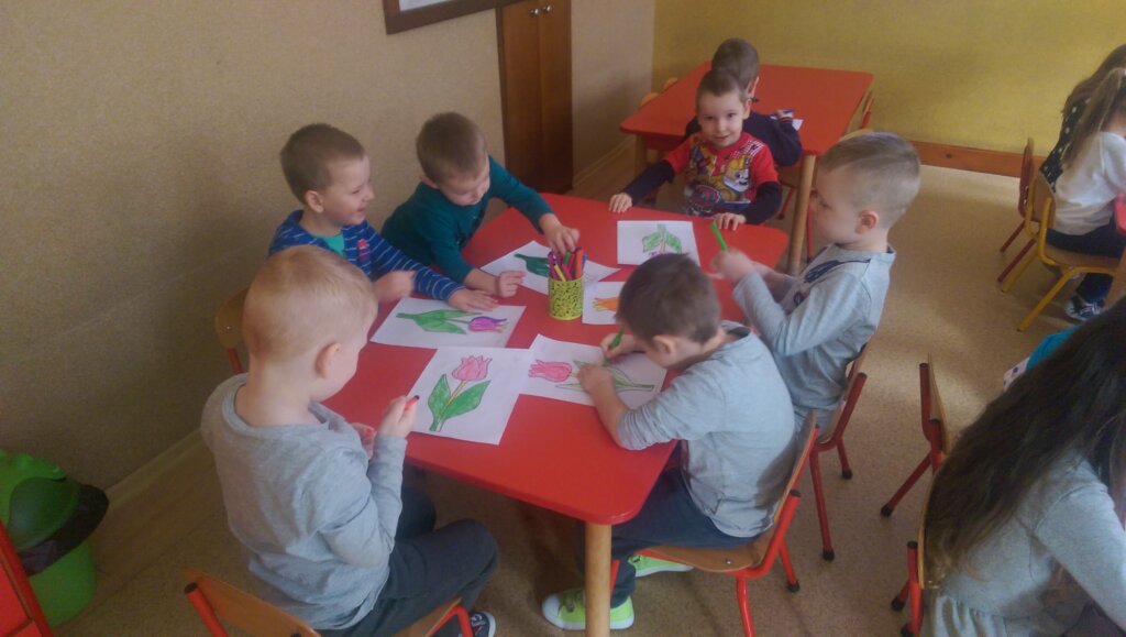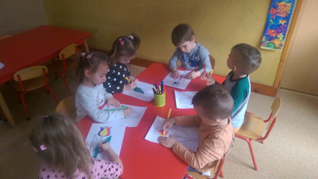 Podczas zajęć dzieci kolorowały kolorowymi mazakami sylwetę tulipan