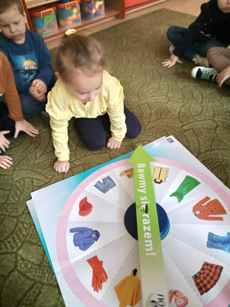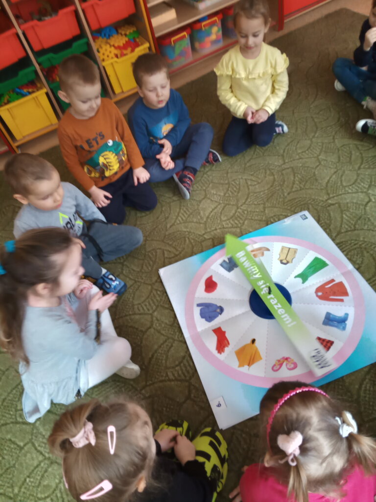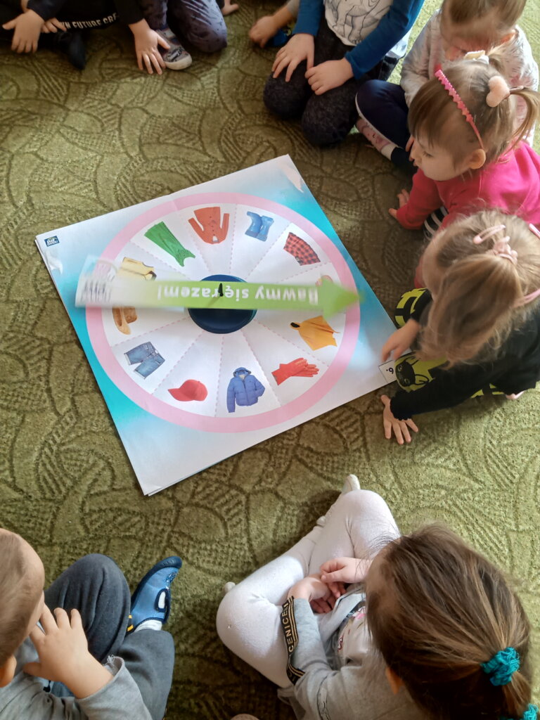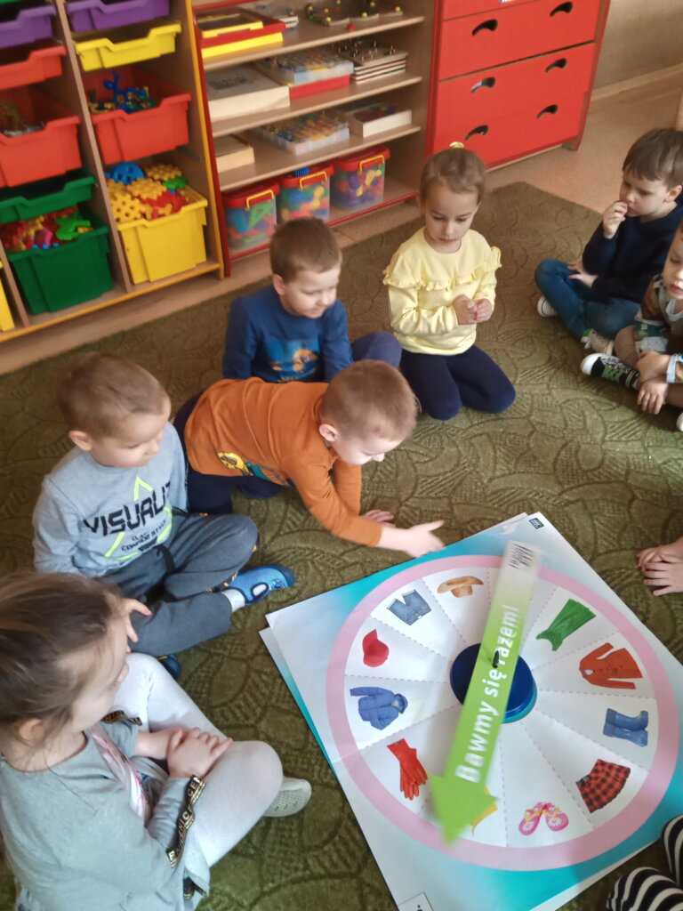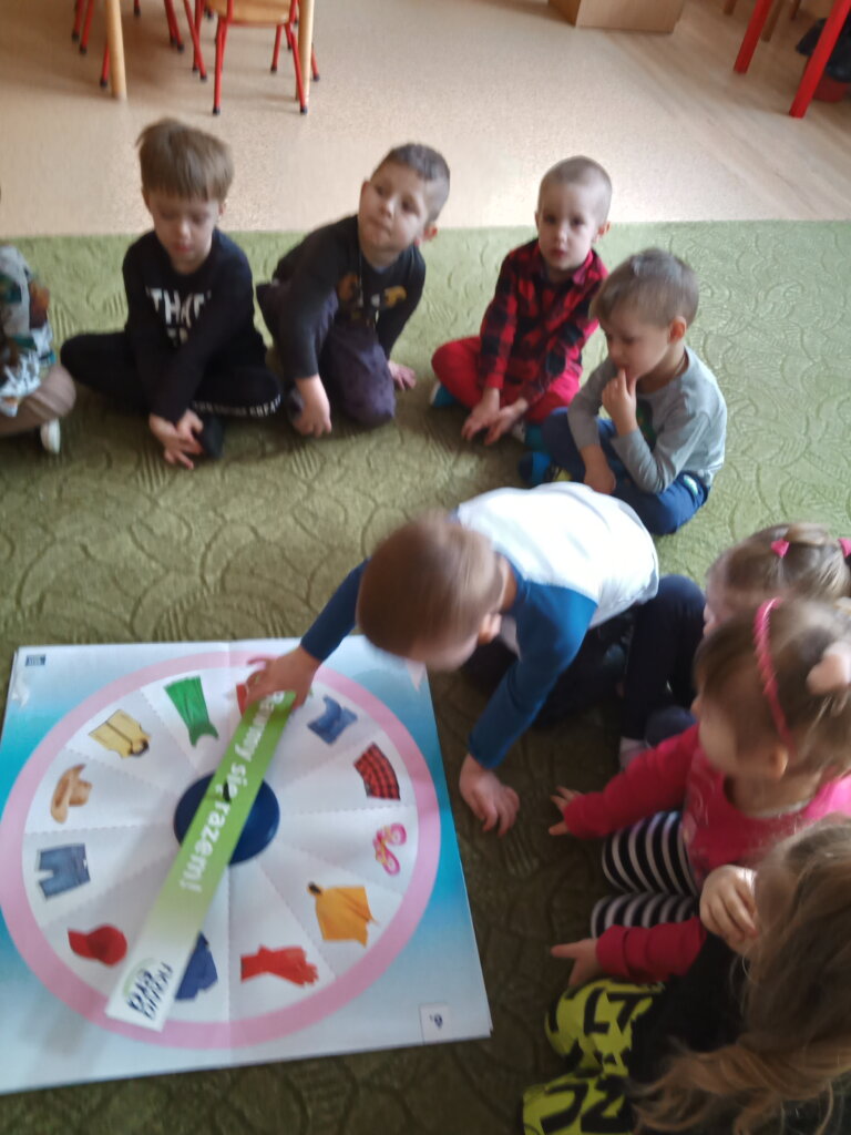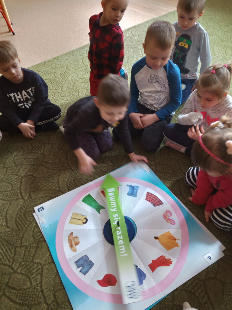 W dniu 24.02 bawiliśmy się w kółeczku i dobieraliśmy adekwatny strój do panującej pogody. Takie zimowe koło fortuny sprawiło że uśmiech gościł na wszystkich twarzach.