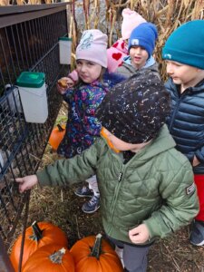 Dzieci odwiedziły Farmę Dyń w Jednaczewie. Pogoda n dopisała i sprawiła, że mogliśmy w pełni skorzystać ze wszystkich zaplanowanych atrakcji: zjeżdżalni, kukurydzianej piaskownicy, karmienia zwierząt, galerii lampionów dyniowych, budowania szałasu oraz skosztowania przysmaków dyniowych: babeczkę i jabłuszek w czekoladzie. Wszystko to w otoczeniu wielu dyń o różnych kształtach i kolorach.