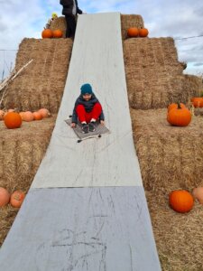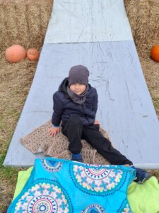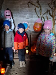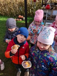 Dzieci odwiedziły Farmę Dyń w Jednaczewie. Pogoda n dopisała i sprawiła, że mogliśmy w pełni skorzystać ze wszystkich zaplanowanych atrakcji: zjeżdżalni, kukurydzianej piaskownicy, karmienia zwierząt, galerii lampionów dyniowych, budowania szałasu oraz skosztowania przysmaków dyniowych: babeczkę i jabłuszek w czekoladzie. Wszystko to w otoczeniu wielu dyń o różnych kształtach i kolorach.